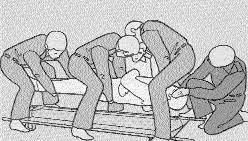 - Cuatro manos: Cuatro personas alrededor de la víctima, dos en el torso y dos en las piernas. Levantan y trasladan uniformemente.